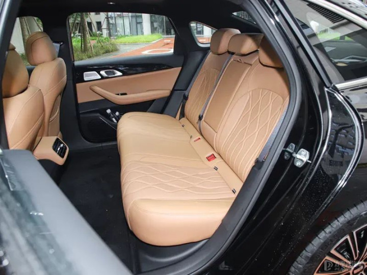 侧面溜背式车顶线条流畅,腰线从前翼子板凌厉延伸至尾灯,另外配备传统的物理门把手。车身尺寸方面,新车长宽高分别为4918/1905/1495mm,轴距为2845mm。