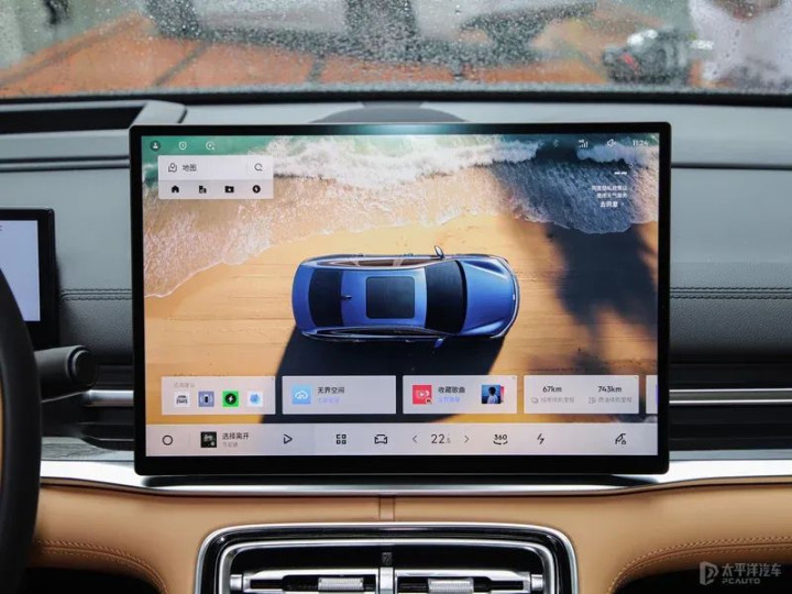 车内搭载15.4英寸2.5K高清中控屏,并且还有用16.6英寸大画幅 W-HUD(12000nit 亮度)可投射导航、车速等关键信息。车机搭载银河Flyme Auto智能座舱系统新增weiget大卡,首发高德 810 地图,支持可视化车道引导、巡航红绿灯读秒等功能;手车互联覆盖 Hicar、Flymelink、Carplay(OTA)。最后融入“交互智能体” 支持全场景语音盲操。