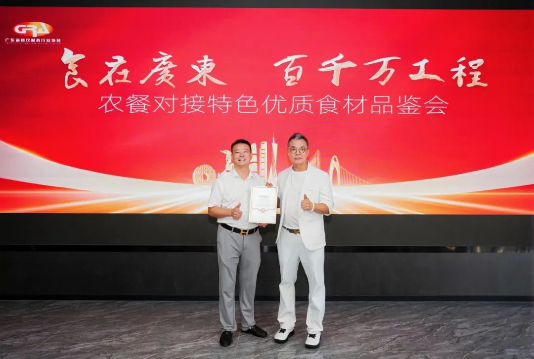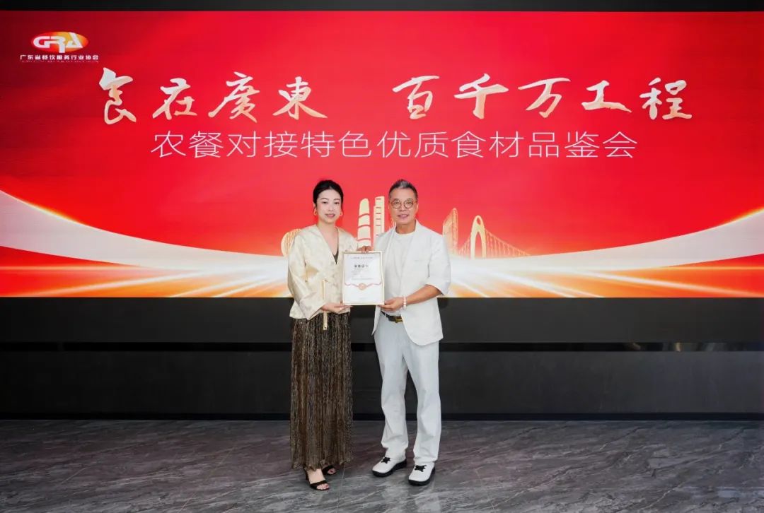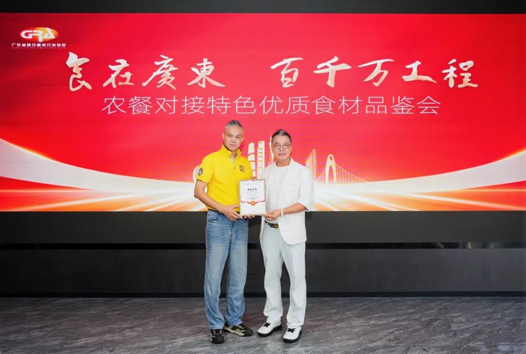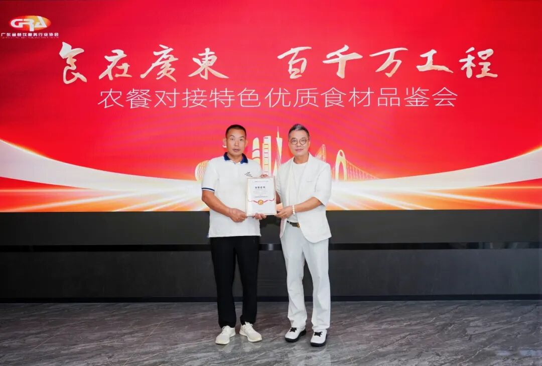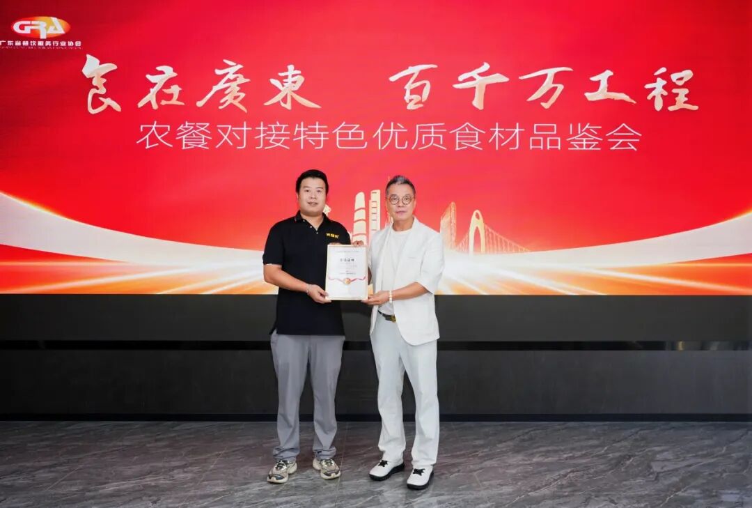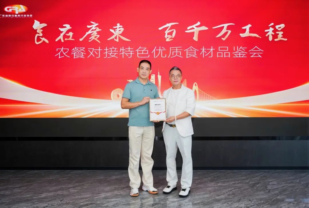 与会单位展示的特色优质食材凭借出色的品质和独特的风味,赢得了在场嘉宾的一致好评。为表彰各单位在优质食材生产与推广方面做出的贡献,中国烹饪协会副会长、广东省餐饮服务行业协会执行会长谭海城为参与此次对接会的单位颁发荣誉证书,激励他们继续深耕农餐领域,为消费者带来更多优质产品。